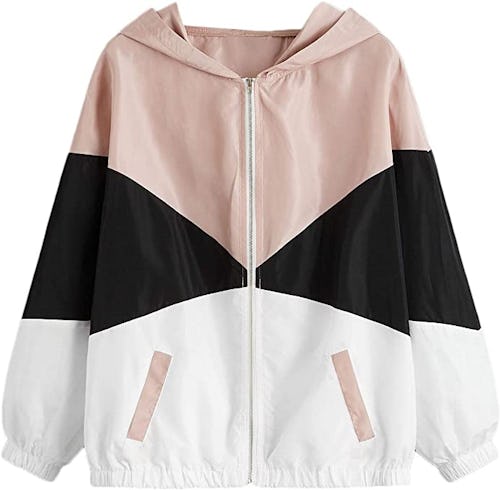 The SweatyRocks hooded windbreaker is lightweight, simple, and budget-friendly. It has a zipper closure, drawstring hood, plus elastic cuffs and hem to keep out the wind. One reviewer reported, “Very thin and light, perfect for humid rainy summers to keep you dry, but cool at the same time.” The windbreaker is loose-fitting and unlined, so it’s ideal for layering on top of other clothes. It’s available in 21 colors and retro color blocks and is made of quick-drying polyester. Plus, it’s machine washable.