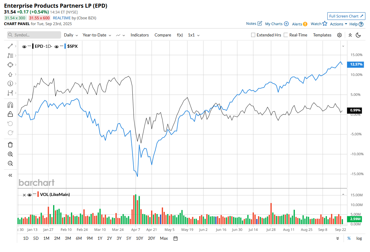 EPD shares have dipped 0.5% year-to-date (YTD), compared to the broader market gain.
