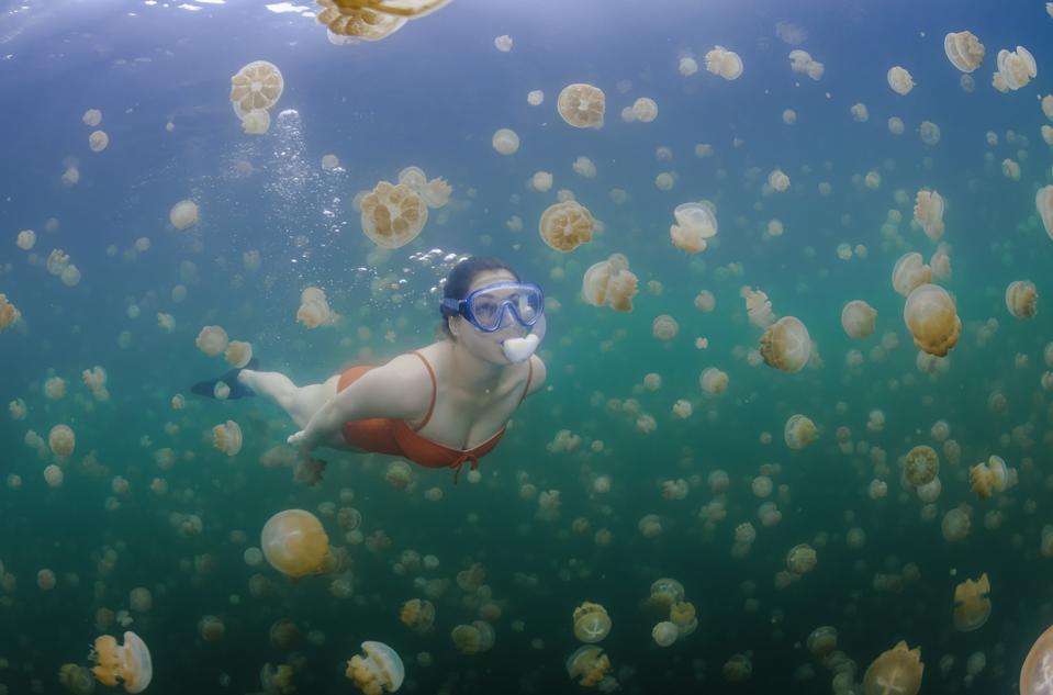 Palau: Swim with sharks. To help protect Palau’s culture and environment from the negative impacts of tourism, when you arrive the stamp in your passport will include the Palau Pledge, which all visitors must sign, promising that “the only footprints I shall leave are those that will wash away.”