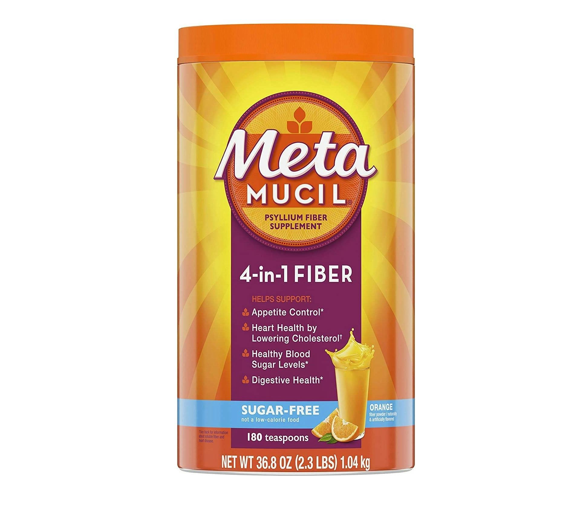 With more than 15,000 reviews and a 4.7-star rating overall on Amazon, Metamucil's psyllium husk fiber supplement is one of the most popular options on the site. It's also a direct recommendation from Dr. Sonpal, who calls it "a must-have because it lowers cholesterol and may reduce the risk of heart disease. This product also has a pleasant orange flavor while restoring regularity." Its main ingredient is psyllium husk, which is a soluble fiber that promotes digestive health and keeps things moving. Simply mix a tablespoon into an 8-ounce glass of water to take it.