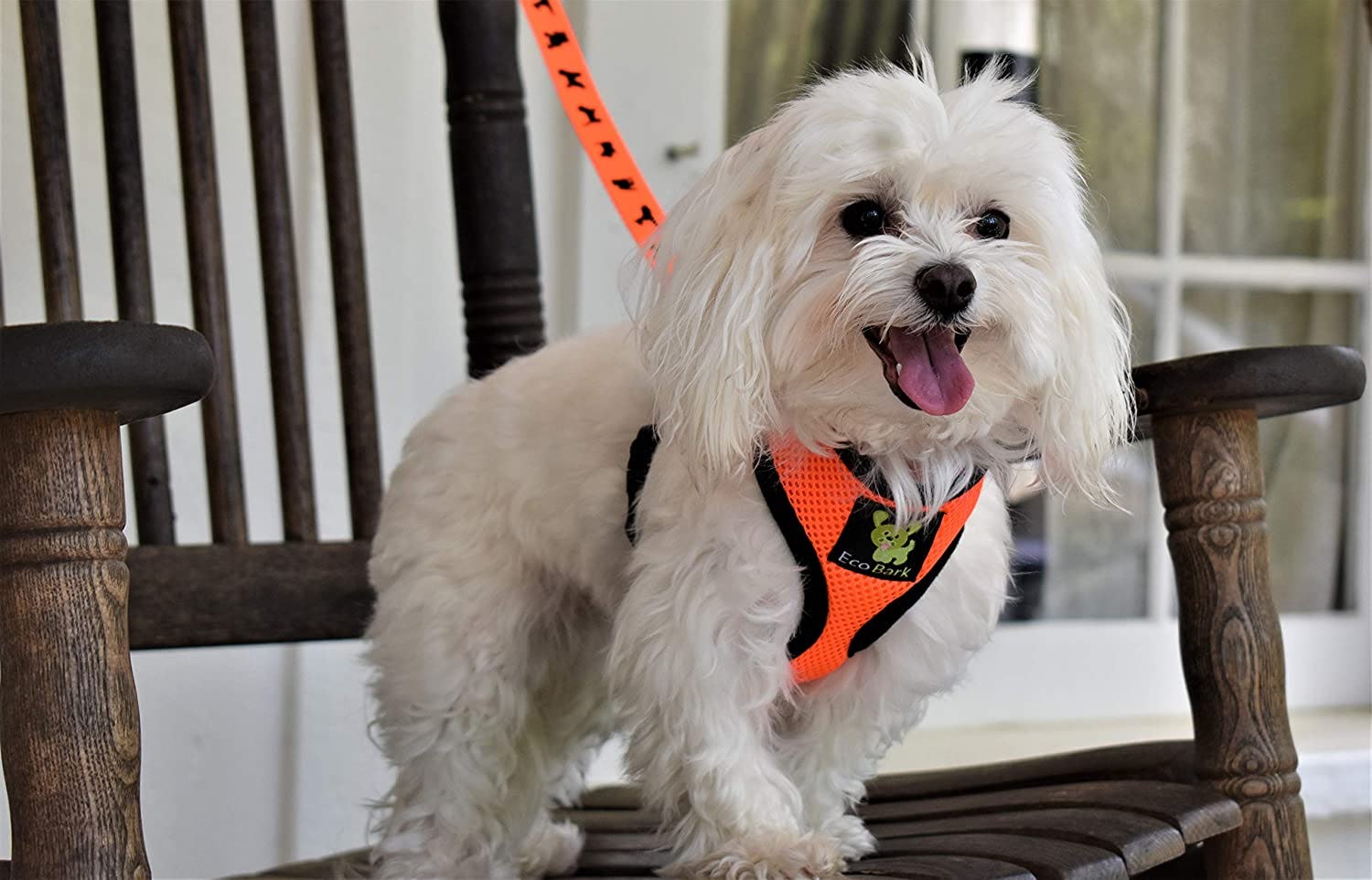 If you're looking to stay on a budget, this dog harness vest is a fantastic option. Made with padded, lightweight mesh — and recycled water bottles — the harness features reinforced stitching for energetic puppies. However, there's only one adjustment point and leash attachment (on the back) and no reflective trim. Another bonus: It's a great option for small dogs, as it it can fit pups that are 6 inches smaller in neck and chest girth than any other option on the list.