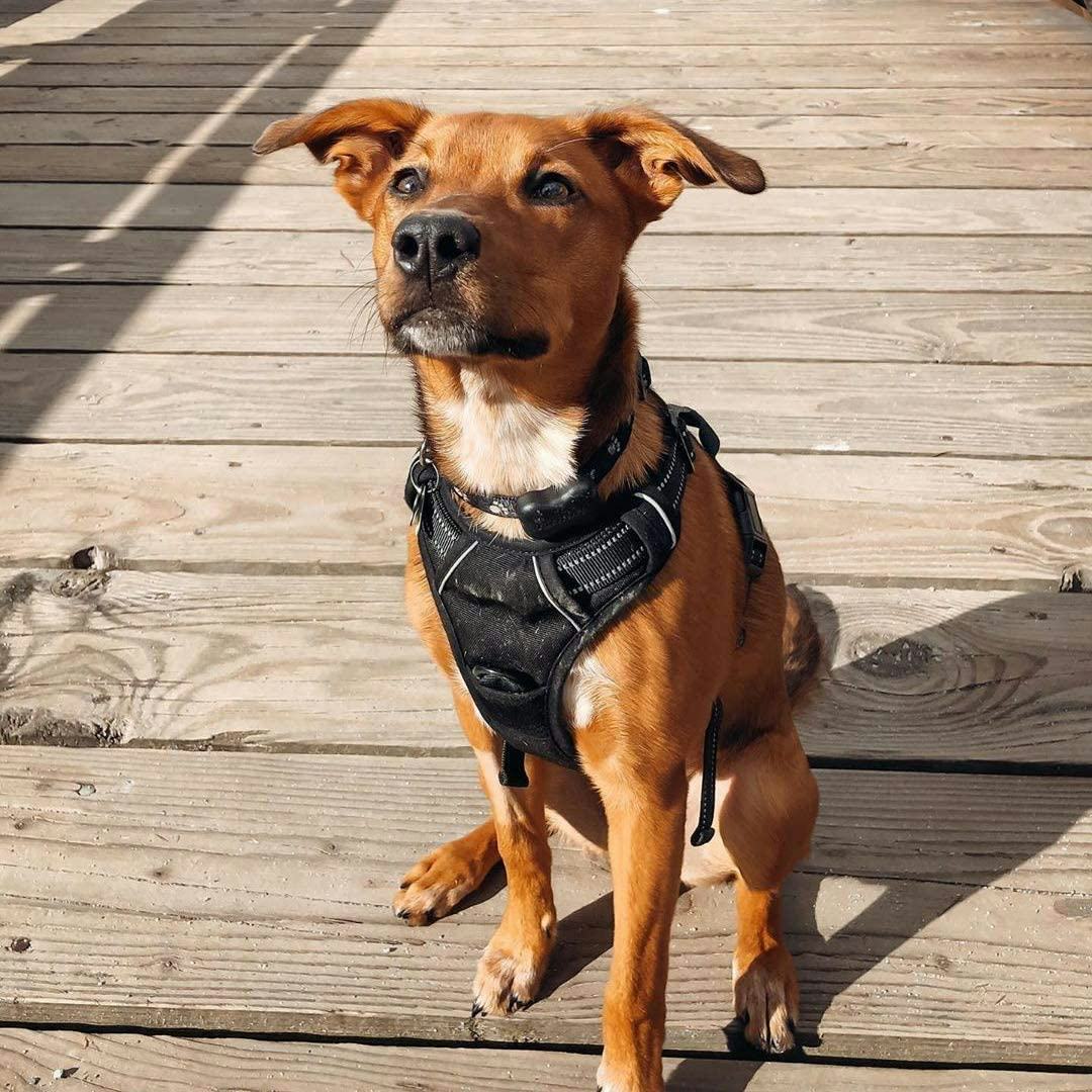 With more than 40,000 five-star reviews, this dog harness vest is a popular option on Amazon. Made with durable, weather-proof mesh, it's breathable to keep your pup cool and has soft cushioning that protects your dog's skin. The harness features a rear leash-attachment, as well as a front leash-attachment to prevent pulling, and the top handle offers extra control in case your dog gets a little too excited when making new friends. The four adjustable straps ensure a proper fit, and the reflective threads enhance visibility during evening hikes.
