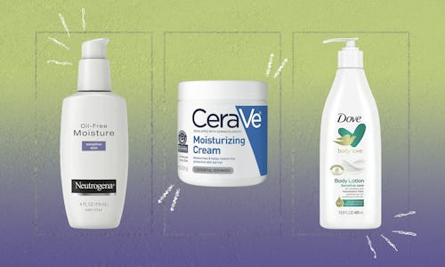 This oil-free, noncomedogenic facial moisturizer is fragrance- and dye-free and helps relieve dry skin using humectant glycerin, occlusive petrolatum, and cetyl alcohol (a fatty alcohol that acts as an emollient.) The formula does contain parabens and diazolidinyl urea which could potentially be irritating, but it’s also earned the NEA’s Seal of Acceptance and more than 10,000 five-star ratings. And according to many Amazon reviewers with sensitive skin, it works. “I have very sensitive skin and I can’t use anything that [...] isn’t oil-free. I’ve been using this moisturizer for a few days and my skin feels so good and soft. It doesn’t have any scent and it doesn’t make my skin greasy,” one fan wrote.