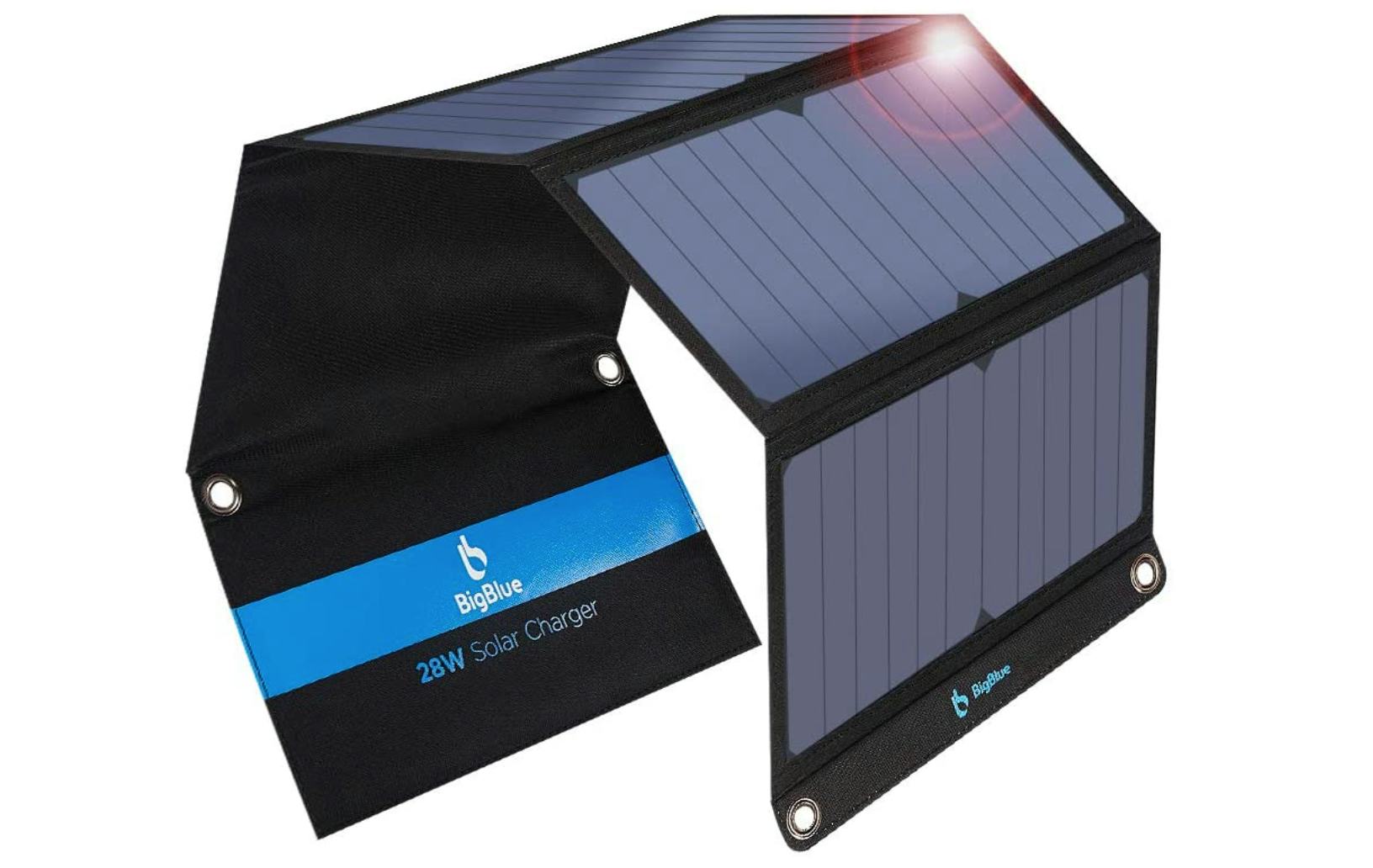 Bring serious solar power to your campsite with this large solar panel, which measures over 4 feet long and 1 foot wide when fully extended. The three panels can convert up to 23% of solar power into energy, and they can be angled to get more direct sunlight with the convenient kickstand. A powerful device, it can charge an iPhone 11 Pro to 50% in just 30 minutes. And, even though it does not come with a power bank, it can be easily attached to one thanks to the multiple included connectors. Although this solar panel is large, it can fold down to just 14.6 by 14.8 inches. It comes with a carrying handle, so it's easy to bring with you wherever you go, though at 7 pounds, it's also the heaviest option on this list.