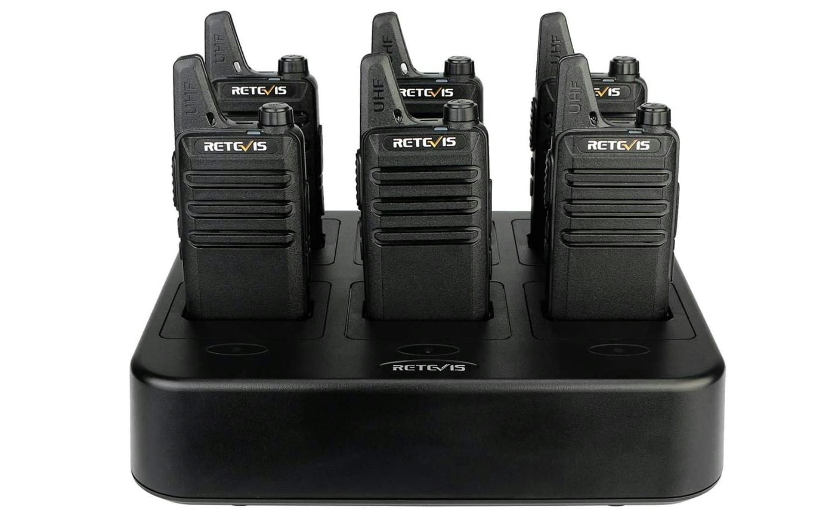 One fan raved: “Wow, the first time I have EVER (I've tried about 5 models) heard clear voices on a GMRS radio. Seriously, went hiking for a few miles (trail was VERY curvy, but probably 1 mile as the crow flies) around hills and through dense forests at a local state park, and my Mom communicated very clearly, from base camp, with me the entire time. So happy I didn't get the cheapo ones again. Also pleased that this set comes with the battery packs and charger station.”