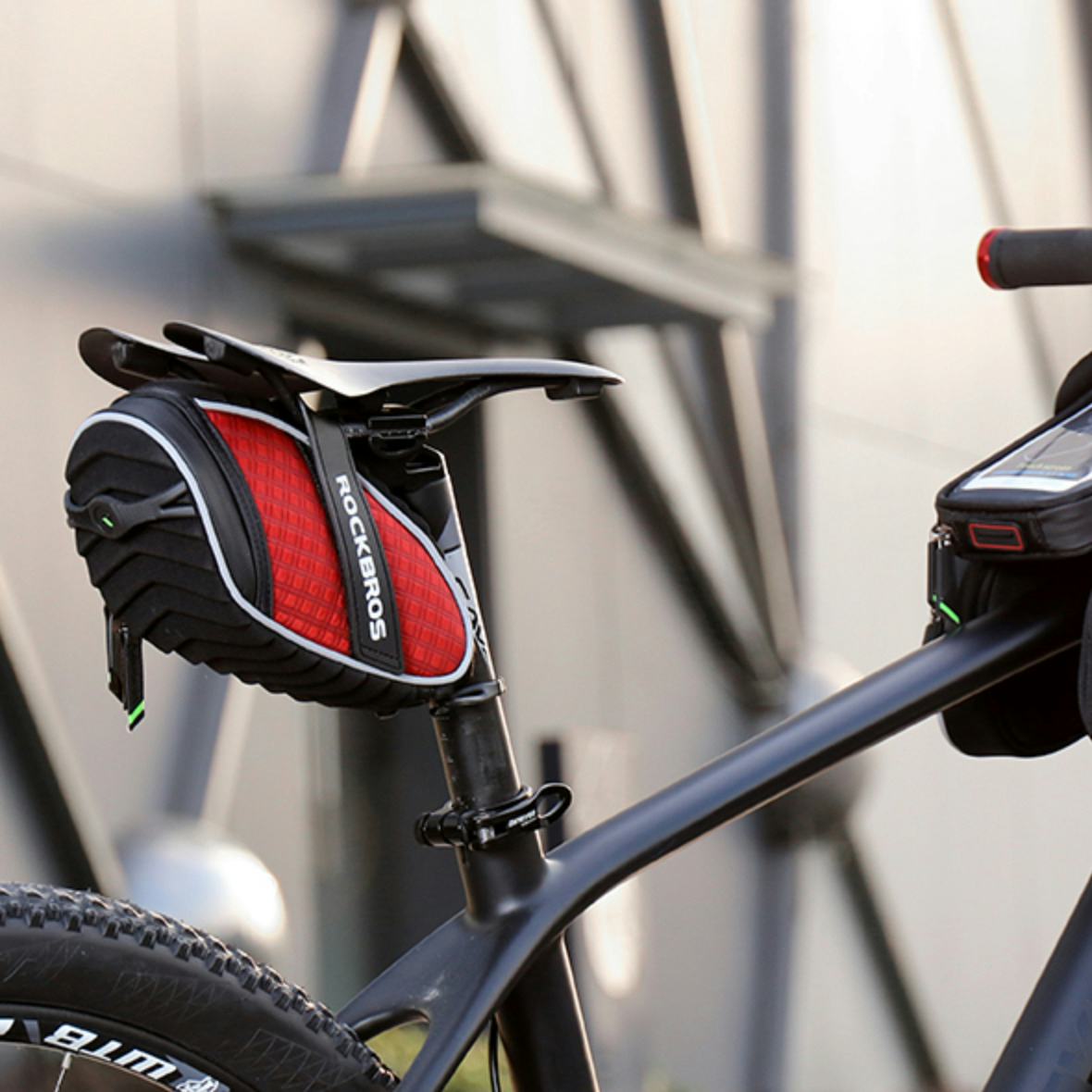 A waterproof bike seat bag will keep your essentials secure while you ride, and this one from ROCKBROS has a sturdy shell design that attaches securely to your bike via two Velcro straps and a soft rubber buckle. Inside, you can store tools and other riding necessities in the top mesh pouch, as well as the two side mesh pouches. Plus, the entire length of this seat back is outlined in thin reflective tape for extra visibility in low light. As for colors, you can get it in red or black.