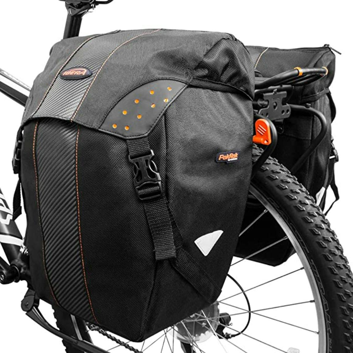 These solid, budget-friendly bike panniers are made of water-resistant nylon and come equipped with a waterproof rain cover in case of a downpour. They're compatible with most bike racks, and they're just as easy to detach as they are to mount thanks to their clip-on system — and a three-point connection ensures they stay securely fastened. The exterior features reflective patches and buckled tie-downs on the lid, while the interior can hold up to 19.8 pounds, with two pockets to keep items from getting lost. One shopper tested these panniers with a full load of groceries — including eggs — and noted, "These bags are exceptional and they passed my test."