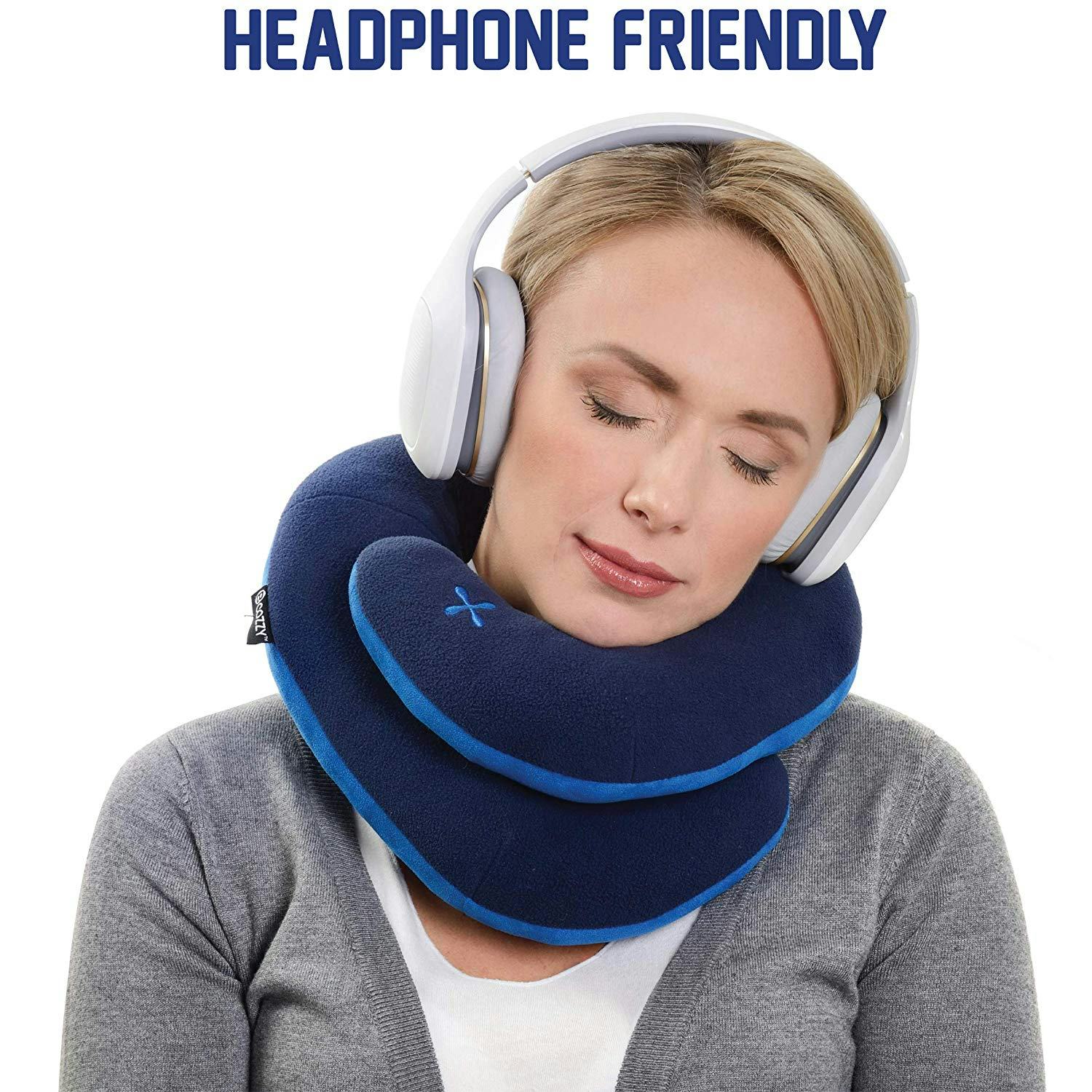 A helpful review: “I bought this for a long haul trip from SF to Paris and brought my usual neck pillow just in case this one didn't work out. I wasn't sure it was going to be comfortable enough. I slept like a baby — much better than with my previous pillow. Even in the dreaded middle seat — this keeps your head just right while sleeping. Highly recommend."