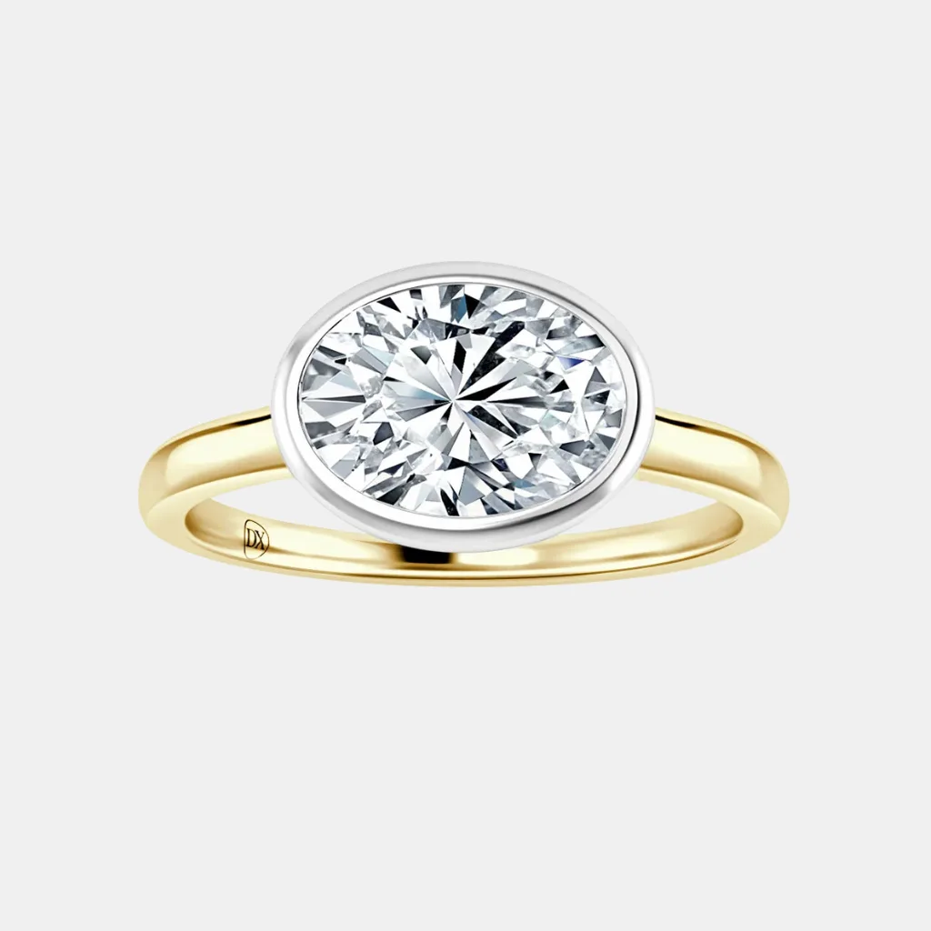 While a traditional engagement stone is set vertically on the ring band, an east-west setting has the diamond or stone positioned horizontally.