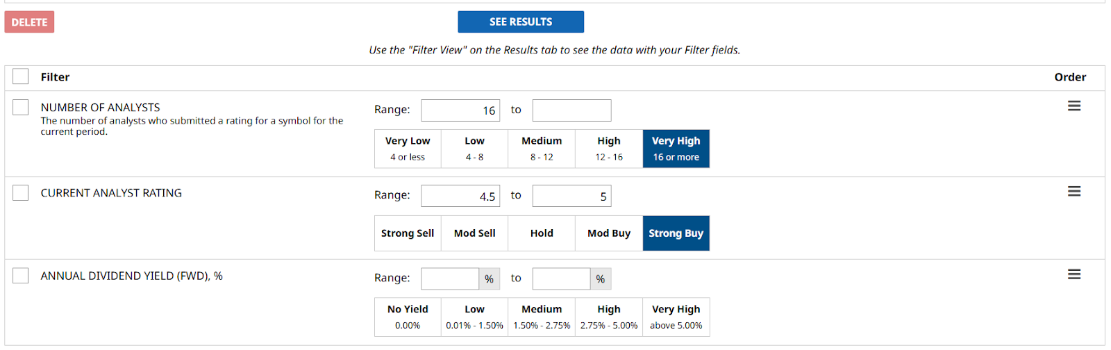 - Number of Analysts: 16 or higher, as more analyst scores make for a stronger consensus.