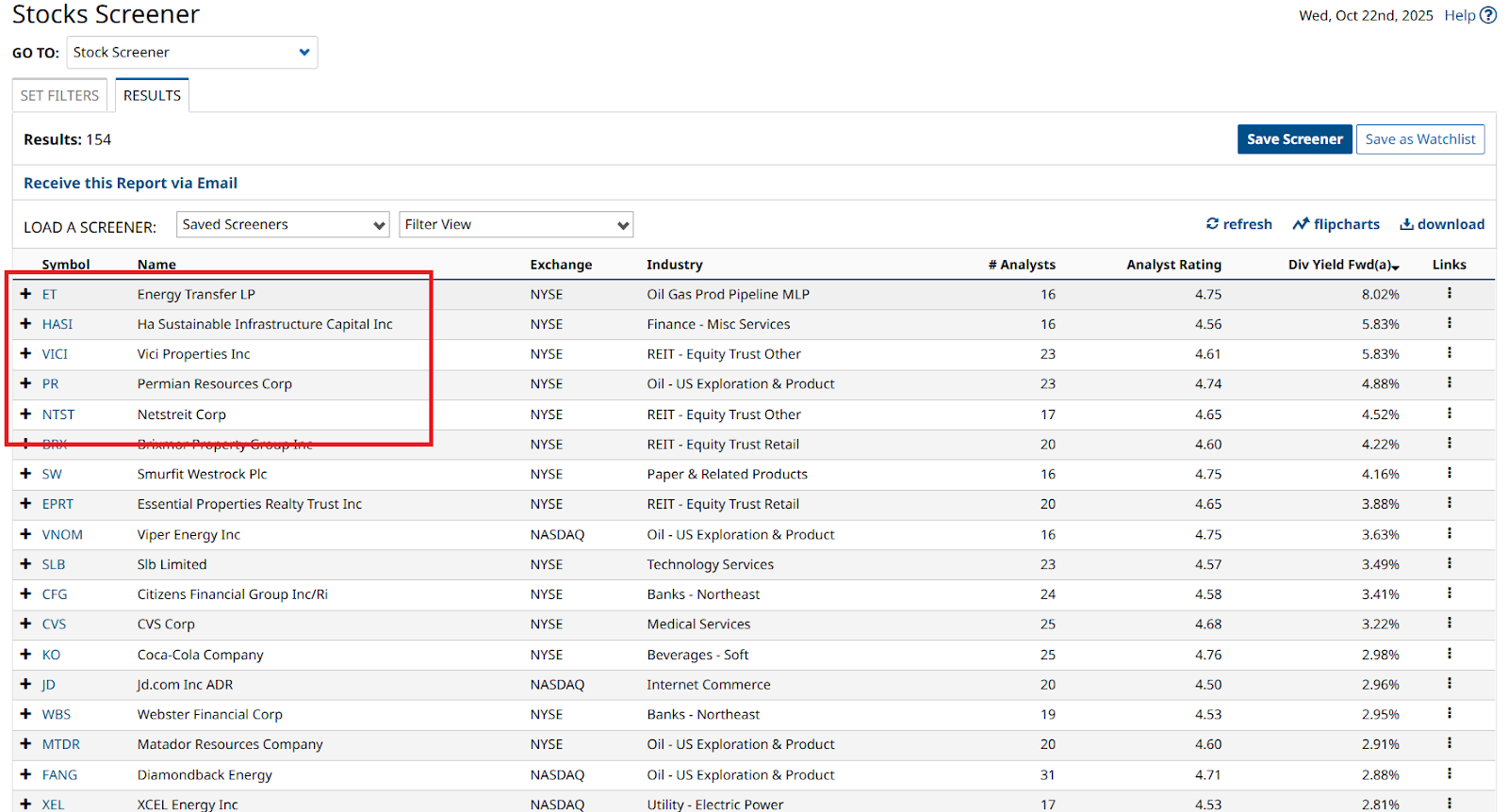I used Barchart’s Stock Screener to find the highest-yielding companies on my watchlist.