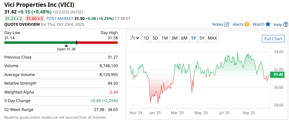 Vici Properties’ most recent financials reported sales rose around 5% from the same quarter last year to $1 billion, while net income also increased approximately 17% year over year to $865 million.