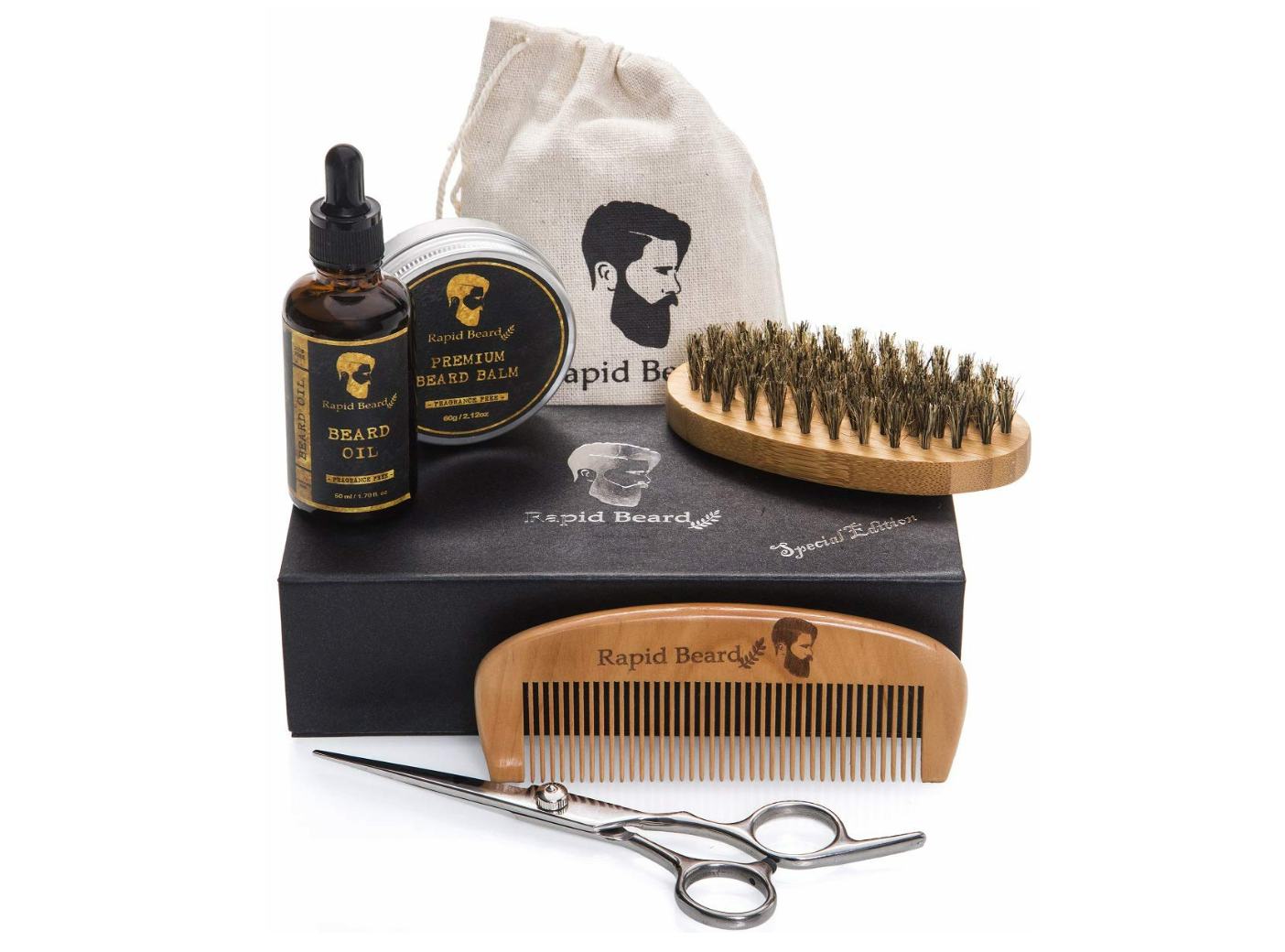 One reviewer wrote: “Owned 3 months. Used on a daily basis. If you are thinking about growing a beard and don't really know what products are good, get this kit. It comes with a handy little instruction manual that tells you exactly what you need to do. The reason I bought this was because my beard was unbearably itchy. After a few days of applying the balm and oil, it hasn't itched since. My hair has become noticeably softer and has a sheen to it. The brush and comb aren't bad and the scissors are Barber quality and very sharp. Once you start running out of balm and oil, you can start looking for different products to suit your own taste.”