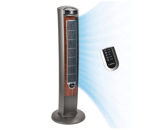 The remote control lets you operate the fan from your bed, and when you don’t need it, you can stash it in the handy storage compartment in the back of the fan. This pick also has an oscillating feature and an eight-hour auto-shutoff timer to save energy.