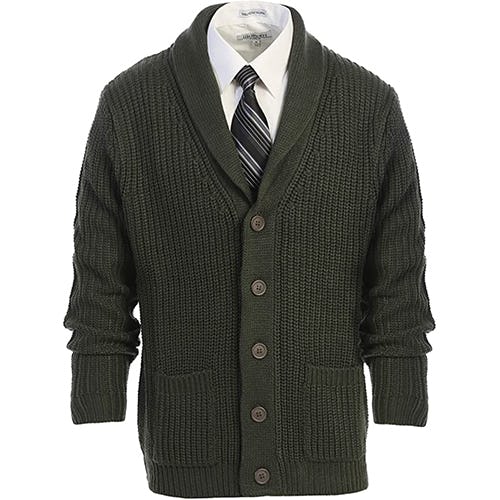 For a good old-fashioned collegiate look, this shawl-collar sweater with elbow patches is ruggedly handsome. It's woven from 100% acrylic for the look and feel of wool — it's even machine-washable — with vegan faux suede on the elbows. Two patch pockets hold whatever you need, and the collar can be turned up for more warmth. "This is a fantastic sweater — really nice weight, good construction, and fits great," one shopper confirmed. To get a modern take, consider a full-zip cardigan with elbow patches instead.