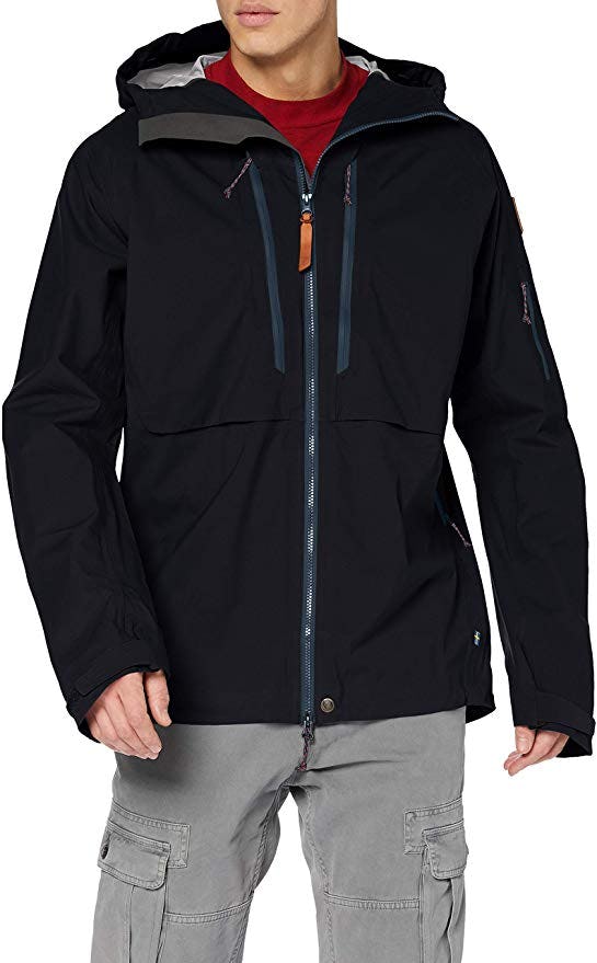 This three-layer hardcore rain jacket is the perfect match for anyone who spends a lot of time in the wet elements and is ready to invest in a top-quality option. Whether it's waiting for the bus in a stormy city or backpacking through the mountains, it will keep you protected with its top-notch polyester fabric treated with DWR, making it fully waterproof. It has a three-way adjustable hood (that's big enough to accommodate a helmet if you use it for biking, skiing, or mountain climbing) and a drawcord with snaps at the hem.