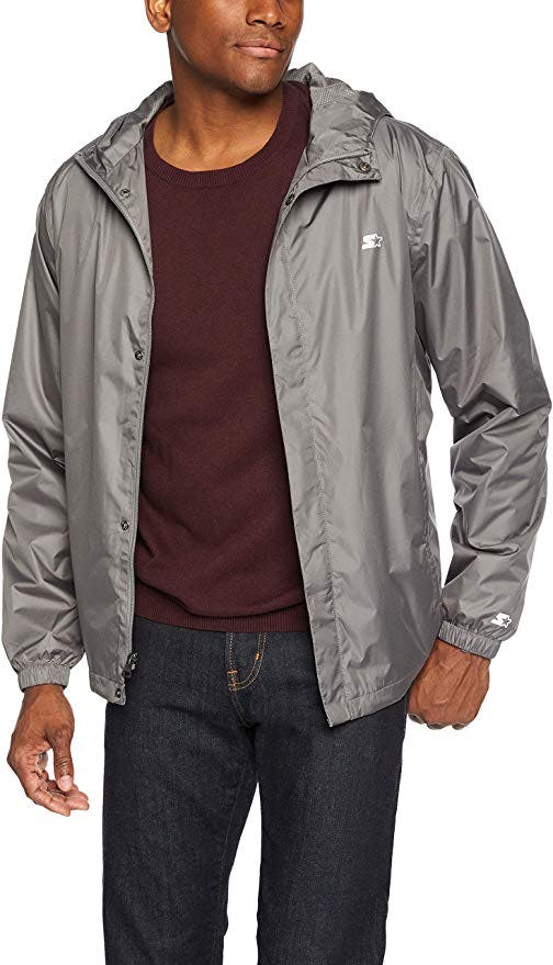 Although not quite as waterproof as the previous pick, this breathable Starter coat nevertheless keeps you reasonably dry for under $20, making it one of the best budget-friendly rain jackets on Amazon. It's a stylish pick, with 100% polyester fabric and a smooth feel. The hood is adjustable with the help of a simple bungee drawcord, and it has zippered pockets to block out additional moisture. Plus, it's lightweight and won't weigh down your bag or backpack. If you're looking for something simple and effective that won't break the bank, this is just the ticket. Choose from four colors: black, gray, navy, or forest green.