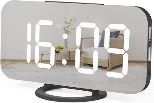 With its large display that's easy to read from across the room, this digital alarm clock can be wall-mounted or simply set on the bedside table. Its unique mirrored face makes for a modern design accent, and the two built-in USB ports let you charge your phone and tablet.