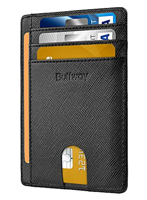 Get protection from any potential identity breaches with this RFID-blocking wallet that interferes with electronic signals that digital pickpockets may use. Available in a variety of colors, it boasts a slim profile and has eight slots that offer plenty of space for credit cards and identification.