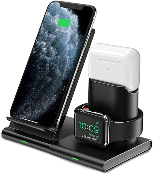 This three-in-one wireless charging station is built to power up your smartphone, Apple Watch, and AirPods, all at the same time. Providing a fast charge through most cases, the station hides the charging cables to reduce clutter on your desk or nightstand.