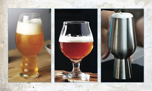 If you plan on drinking your beer outdoors or need glassware that can survive the occasional party foul, these outdoor beer glasses are made to stand up to dings and drops. While they look like glass, they’re actually made out of shatter-resistant, BPA-free Tritan plastic. They hold 18 ounces each and come in a pair. Unlike your single-use party cups, these are reusable — just chuck them into the dishwasher when they’re dirty. Like their glass-made counterparts, they feature a tall bowl that tapers inward toward the lip (though they don’t feature a ridged base or nucleation points).