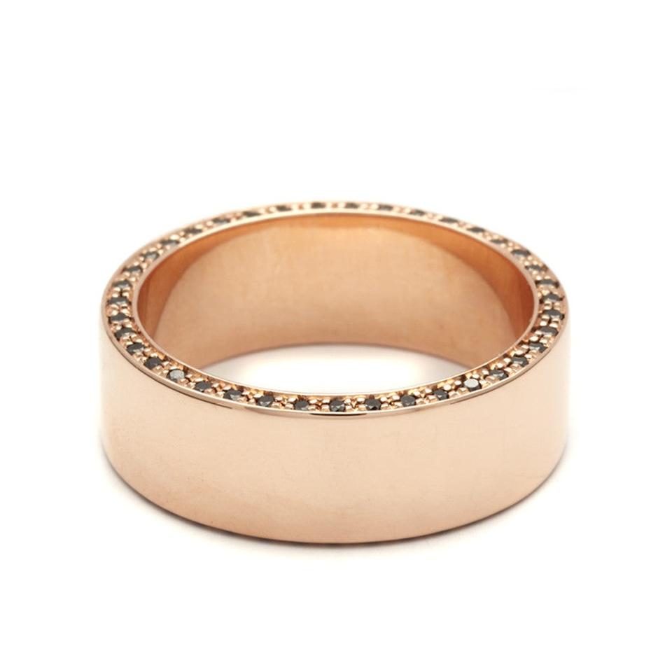 An option with a vintage sensibility, Anna Sheffield’s Virtue band is decorated with discreet black diamonds. The brand also offers personalized engravings.