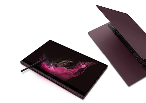 The Galaxy Book 2 Pro 360 features the same specs as its above counterpart, but it has a touchscreen and can transform into a tablet or a “tent mode” stand. The Galaxy Book 2 Pro 360 also comes with an S Pen for drawing and handwritten notes. Samsung designed the Galaxy Book 2 Pro models to pair with its Galaxy Tab tablets for use as a second screen.