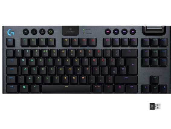 This Logitech gaming keyboard has earned a 4.7-star overall rating after more than 6,000 reviews, making it a fan-favorite pick on Amazon. The model featured here is tenkeyless, linear, and wireless, but you can also choose a full-size keyboard and clicky or tactile styles on the same page; there’s also a full-size wired option. This durable, lightweight keyboard features media controls, a volume wheel, programmable F-keys, and customizable RGB lighting that responds to your gameplay. The keyboard above connects to devices via the included USB receiver or Bluetooth, and you’ll get up to 40 hours of use per charge.