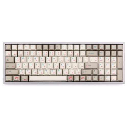 If you love the ABS, Cherry-profile style of GMK and ePBT, but want a bit more color, Domikey’s offerings can do just that. These keycaps offer similar fonts, legends, and general quality to GMK and ePBT, but also offer something unique: Triple-shot keycaps. Because of this, these keycaps can have separate colors for their English and Japanese characters without having to use UV printing (like GMK does with sets like Cyrillic). While Domikey doesn’t offer the widest selection possible, sets like Semiconductor and Vintage, along with their own versions of Miami Nights and GMK Laser (called Pumper Cyber Punk), provide a similar range to ePBT and GMK’s own sets.