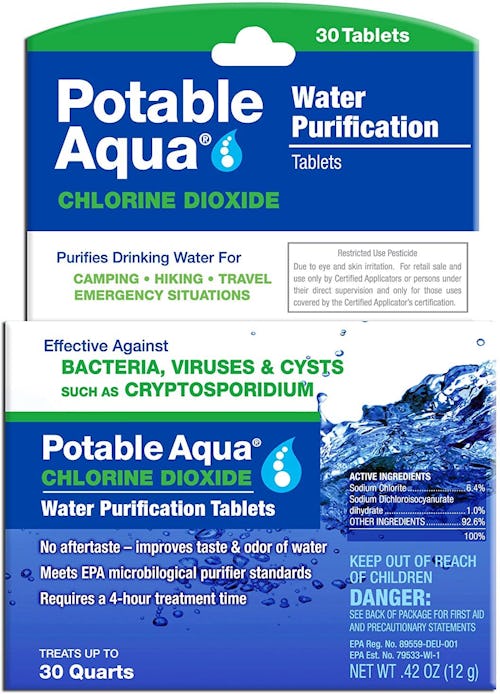 The details: The combination of active ingredients in these water purification tablets from Potable Aqua react to create chlorine dioxide, which is a powerful disinfectant that can make questionable water suitable to drink. This option is effective against bacteria, viruses, and cysts (including giardia lamblia), and it’ll even improve the taste and smell of your water, too (reviewers confirmed that the tablets don’t leave behind any aftertaste). You’ll get 30 individually wrapped tablets in a set; throw one in your pack or bag to ensure that you’ll always have access to clean, safe, and tasty drinking water wherever your travels take you.