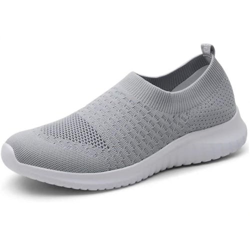 This knit sneaker has a loafer silhouette while still providing the comfort and support of a sneaker. The elastic top provides a comfortable fit, and the slip-on shoes have a pull tab to make getting in and out of your footwear easier. The walking sneakers also have memory foam insoles and slip-resistant, shock-absorbing rubber soles — but they are not available in women’s sizes.