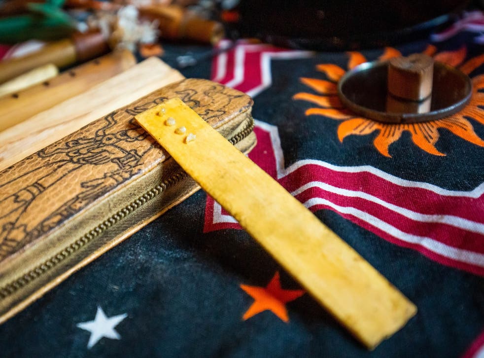 A soft-spoken medicine woman from Los Angeles named Aluna Lua began the ceremony by blowing a powdered tobacco snuff from the Amazon known as rapé up the nostrils of participants. Allison compares it to feeling “like you’ve been pleasantly electrocuted”.