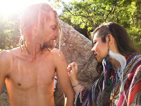 A soft-spoken medicine woman from Los Angeles named Aluna Lua began the ceremony by blowing a powdered tobacco snuff from the Amazon known as rapé up the nostrils of participants. Allison compares it to feeling “like you’ve been pleasantly electrocuted”.