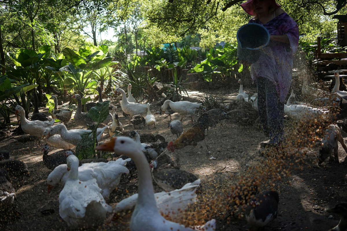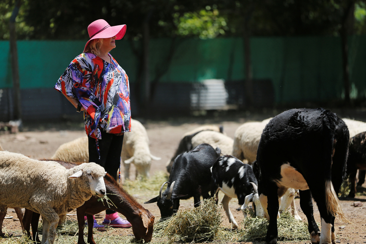 Gabriela Bezeric feeds rescued animals at her animal sanctuary "Animal Paradise," she has managed with her husband Armando Scoppa for over a quarter of a century, in General Rodriguez, Argentina January 25, 2020. Picture taken January 25, 2020. REUTERS/Mariana Greif