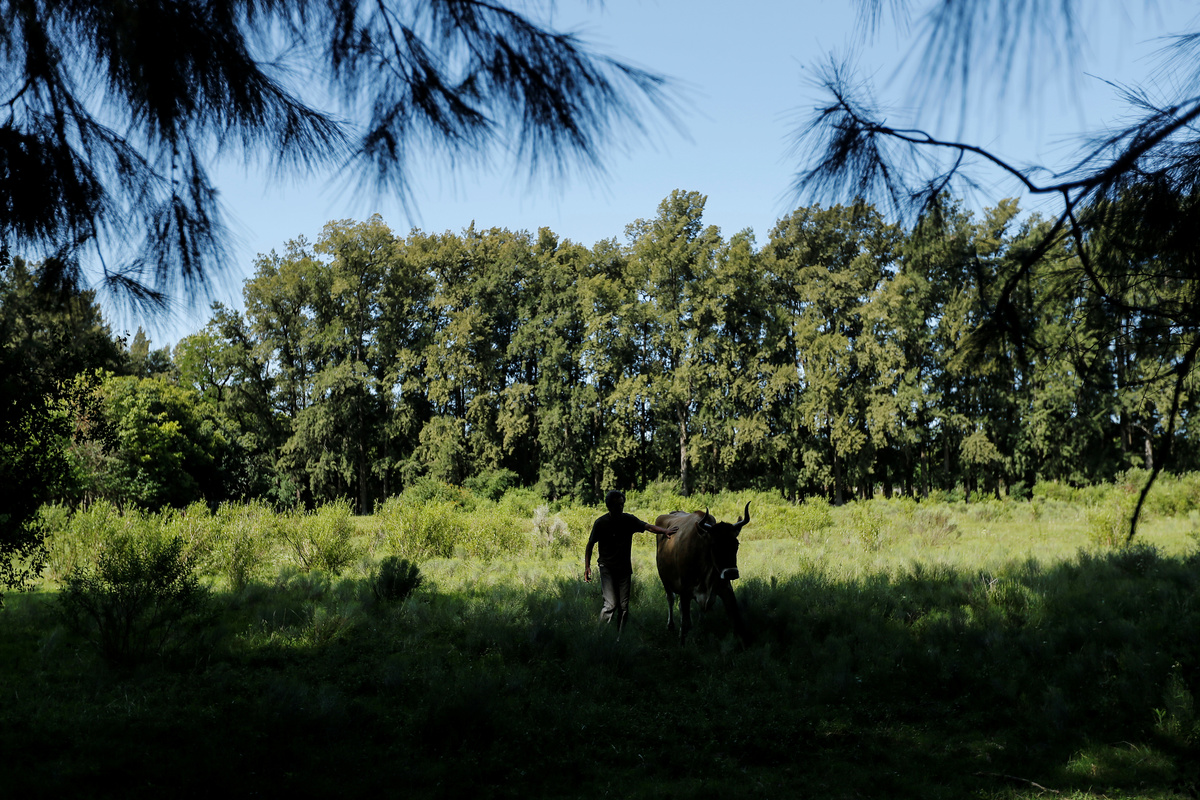 Armando Scoppa walks with a rescued cow at his animal sanctuary "Animal Paradise," he has been managing with his wife Gabriela Bezeric for over a quarter of a century, in General Rodriguez, Argentina January 24, 2020. Picture taken January 24, 2020. REUTERS/Mariana GreifArmando Scoppa feeds a rescued horse at his animal sanctuary "Animal Paradise," he has been managing with his wife Gabriela Bezeric for over a quarter of a century, in General Rodriguez, Argentina January 24, 2020. Picture taken January 24, 2020. REUTERS/Mariana GreifA rescued calf and two rescued roosters rest at the animal sanctuary "Animal Paradise," managed by Gabriela Bezerica and her husband Armando Scoppa for over a quarter of a century, in General Rodriguez, Argentina January 25, 2020. Picture taken January 25, 2020. REUTERS/Mariana GreifA rescued calf is being fed at the animal sanctuary "Animal Paradise," managed by couple Gabriela Bezeric and Armando Scoppa for over a quarter of a century, in General Rodriguez, Argentina January 24, 2020. Picture taken January 24, 2020. REUTERS/Mariana GreifA mistreated horse is seen at the animal sanctuary "Animal Paradise," managed by Gabriela and her husband Armando Scoppa for over a quarter of a century, after it had been dropped off, in General Rodriguez, Argentina January 25, 2020. Picture taken January 25, 2020. REUTERS/Mariana GreifGabriela Bezeric stands surrounded by rescued animals at her animal sanctuary "Animal Paradise," she has been managing with her husband Armando Scoppa for over a quarter of a century, in General Rodriguez, Argentina January 24, 2020. Picture taken January 24, 2020. REUTERS/Mariana GreifA rescued calf rests at the animal sanctuary "Animal Paradise," managed by Gabriela Bezerica and her husband Armando Scoppa for over a quarter of a century, in General Rodriguez, Argentina January 25, 2020. Picture taken January 25, 2020. REUTERS/Mariana Greif