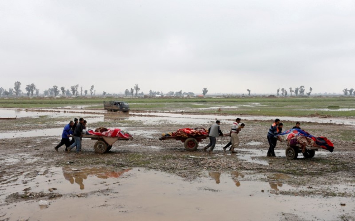 Relatives carry the bodies of civilians killed in air strike, during a battle between Iraqi forces and Islamic State militants, in Mosul, Iraq, March 17, 2017. Youssef Boudlal: "Early that morning I was following some displaced Iraqi people from different areas in Mosul fleeing their homes during clashes between Iraqi forces and Islamic State militants in the city of Mosul. I saw a few people transporting their belongings on trolleys. I thought it was just food and a few clothes, but the closer they got the more the smell was unbearable and I discovered that they were carrying the bodies of civilians who were killed a few days ago in air strikes." REUTERS/Youssef Boudlal/File Photo