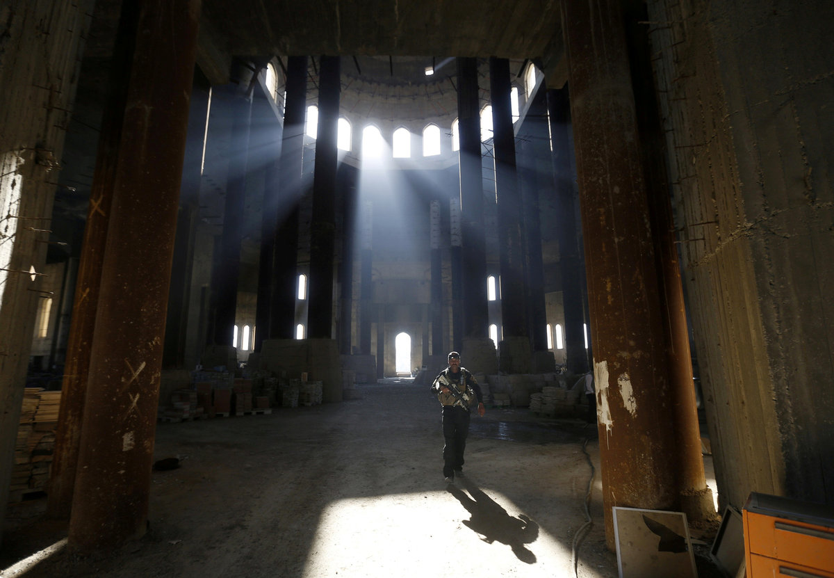 Iraqi Special Operations Forces (ISOF) gather during an operation to clear the al-Zirai district of Islamic State militants in Mosul, Iraq, January 19, 2017. Muhammad Hamed: "In this picture, we were on a tour with the head of the Rapid Response Unit General Al Assadi when the soldiers decided to walk into a damaged mosque. The area we were in was only recently liberated. I was in the same mosque the day before and the Federal Police had shot down an Islamic State drone carrying explosive just outside. At first I was hesitant to go deep into the mosque, as I worried that some explosives may be left behind. But when I saw the lights coming in through the broken windows and after getting okay from my security advisor I decided to go in for the picture." REUTERS/Muhammad Hamed/File Photo
