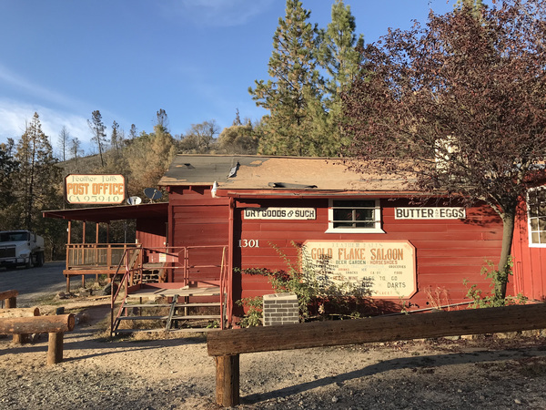 Dating back to at least the 1950s, the Gold Flake Saloon is a nod to the region's mining past, painted barn red with signs that advertise "dry goods and such" and other necessities, such as horse shoes and "ales to go." Though it has moved around throughout the years, the town post office next door officially turned 100 years old in March, according to Bourasa.