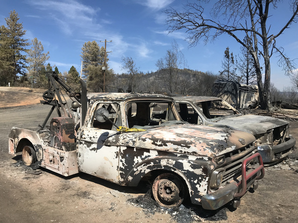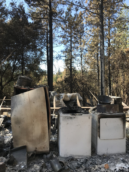 Preston is no stranger to destruction by wildfire. Her own property _ with its swimming pool, deck and tennis court _ burned in the 2017 Ponderosa fire. She and her partner lived briefly in a friend's cabin before moving into her former garage on the burn scar.