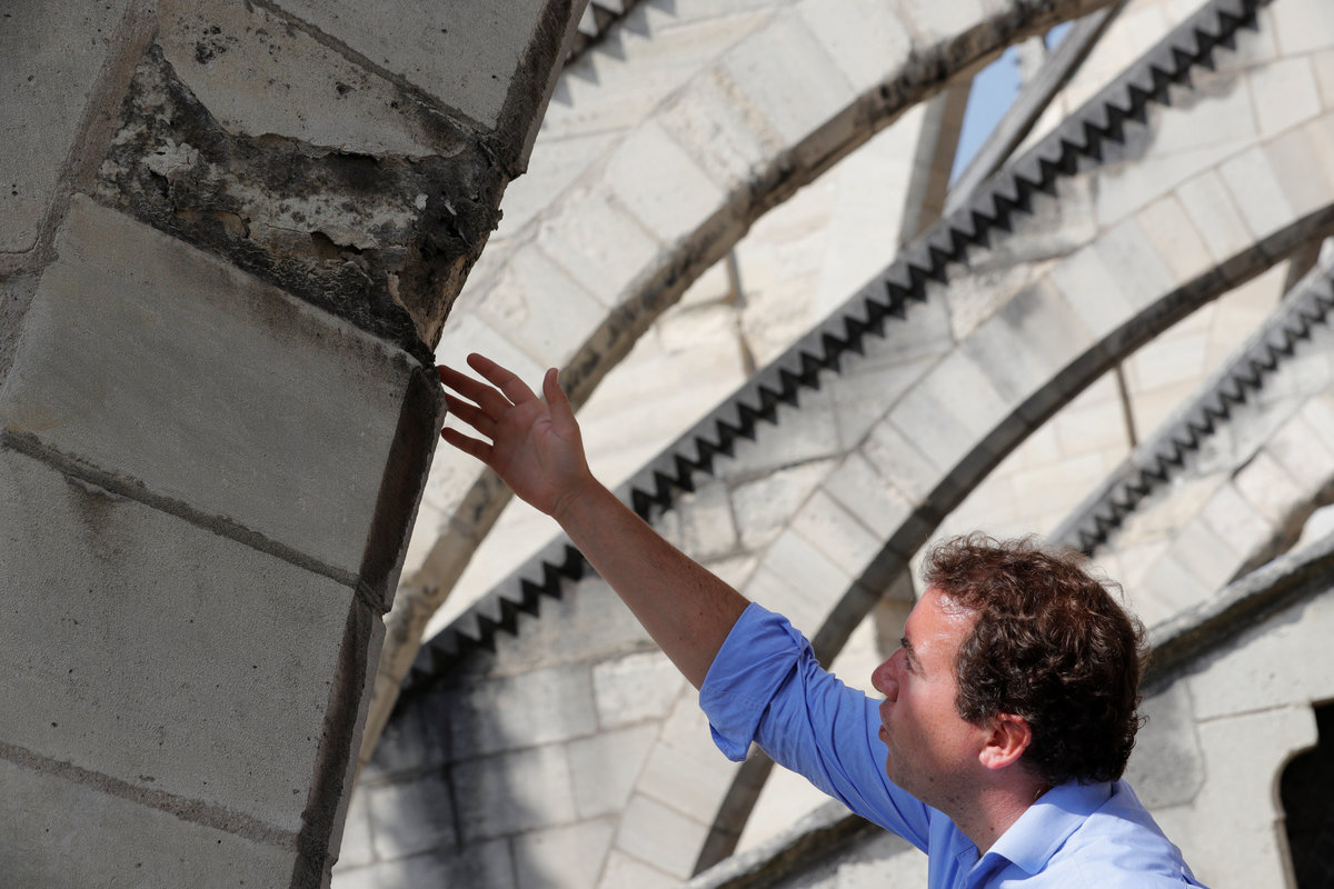 Andre Finot, communications director for Notre Dame of Paris, shows a crumbling arch of the Notre Dame Cathedral in Paris, France, August 28, 2017. REUTERS/Philippe WojazerInside view of the Notre Dame Cathedral in Paris, France, August 28, 2017. REUTERS/Philippe WojazerA general view shows the Notre Dame Cathedral on the edge of the Seine river in Paris, France, August 28, 2017. REUTERS/Philippe WojazerA view shows the Notre Dame Cathedral in Paris, France, August 28, 2017. REUTERS/Philippe WojazerA woman prays at the Notre Dame Cathedral in Paris, France, August 28, 2017. REUTERS/Philippe WojazerAn angel sculpture is seen inside the Notre Dame Cathedral in Paris, France, August 28, 2017. REUTERS/Philippe WojazerA view shows apostles statues, which will be restored, at the Notre Dame Cathedral in Paris, France, August 28, 2017. REUTERS/Philippe WojazerA view shows arches of the Notre Dame Cathedral in Paris, France, August 28, 2017. REUTERS/Philippe WojazerTourists visit the Notre Dame Cathedral in Paris, France, August 28, 2017. REUTERS/Philippe WojazerTourists visit the Notre Dame Cathedral in Paris, France, August 28, 2017. REUTERS/Philippe WojazerA view shows a gargoyle at the Notre Dame Cathedral in Paris, France, August 28, 2017. REUTERS/Philippe WojazerA view shows a damaged gargoyle at the Notre Dame Cathedral in Paris, France, August 28, 2017. REUTERS/Philippe WojazerA woman prays inside the Notre Dame Cathedral in Paris, France, August 28, 2017. REUTERS/Philippe WojazerA view shows part of a damaged pinnacle of the Notre Dame Cathedral in Paris, France, August 28, 2017. REUTERS/Philippe WojazerA view shows the Notre Dame Cathedral in Paris, France, August 28, 2017. REUTERS/Philippe WojazerAn angel sculpture is seen inside the Notre Dame Cathedral in Paris, France, August 28, 2017. REUTERS/Philippe WojazerA view shows part of damaged arches of the Notre Dame Cathedral in Paris, France, August 28, 2017. REUTERS/Philippe WojazerA view shows a sculpture at the Notre Dame Cathedral in Paris, France, August 28, 2017. REUTERS/Philippe WojazerA view shows apostles statues, which will be restored, at the Notre Dame Cathedral in Paris, France, August 28, 2017. REUTERS/Philippe WojazerA view shows damaged gargoyles at the Notre Dame Cathedral in Paris, France, August 28, 2017. REUTERS/Philippe WojazerA view shows a gargoyle and part of a damaged pinnacle at the Notre Dame Cathedral in Paris, France, August 28, 2017. REUTERS/Philippe Wojazer