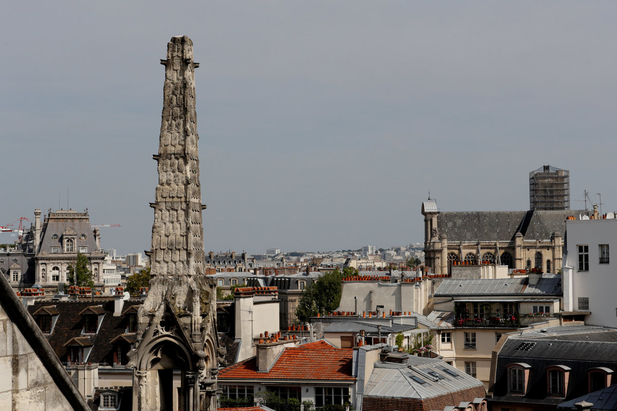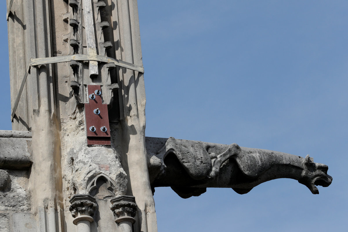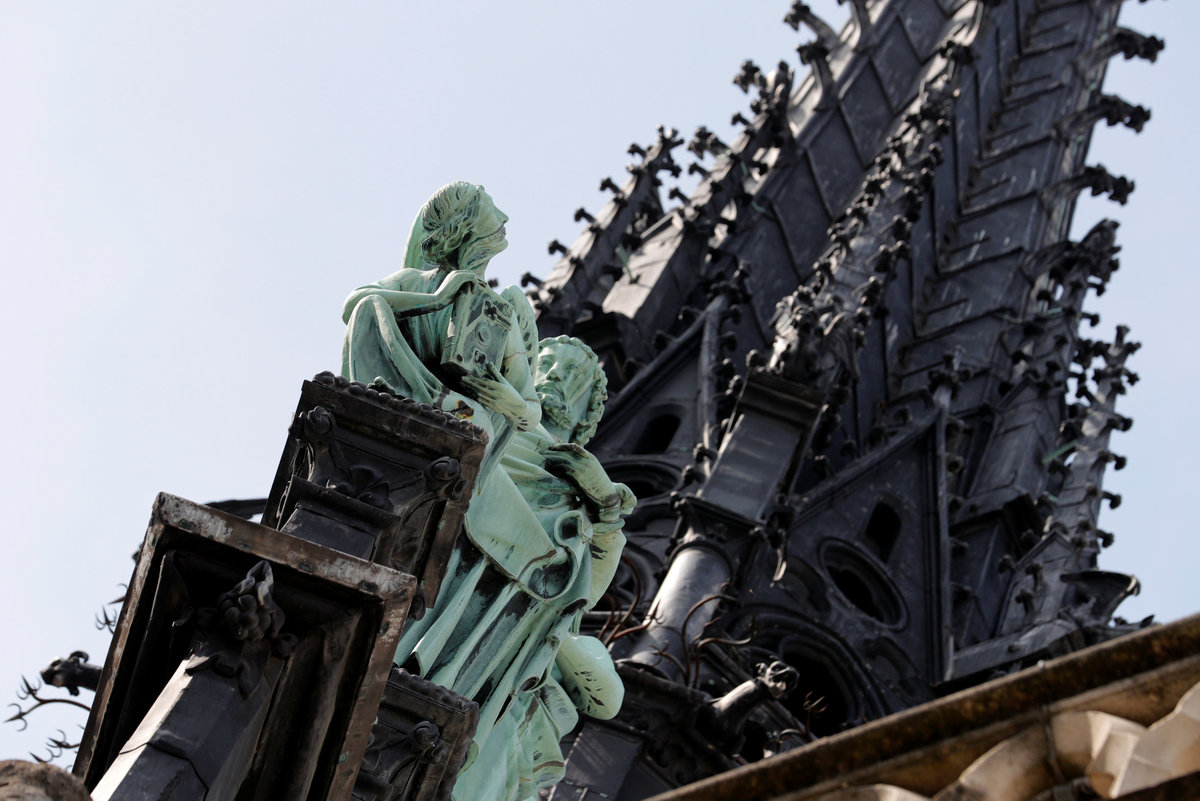 A view shows a damaged pinnacle of the Notre Dame Cathedral in Paris, France, August 28, 2017. REUTERS/Philippe Wojazer