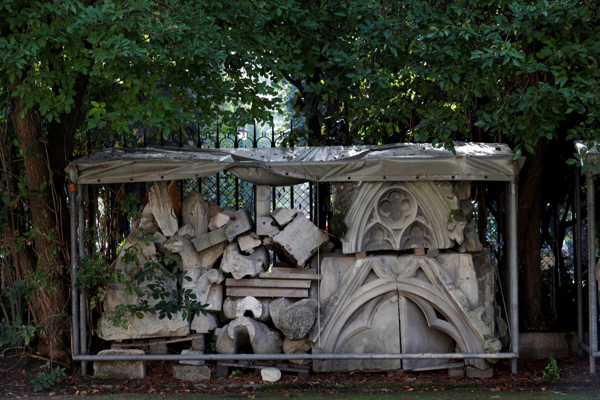 A view shows a 'stone cemetery' from fallen masonry in the courtyard of the Notre Dame Cathedral in Paris, France, August 28, 2017. REUTERS/Philippe Wojazer