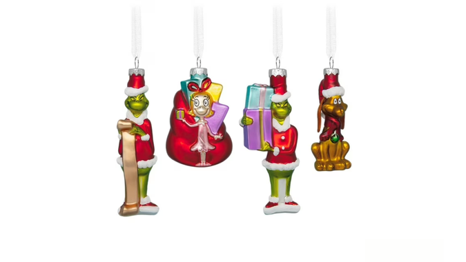 Add a special touch to your Christmas tree this year with the Hallmark-licensed “How the Grinch Stole Christmas” glass ornaments. This four-ornament set features the whimsical characters from the iconic story and placing them on your tree each year can become a new tradition.