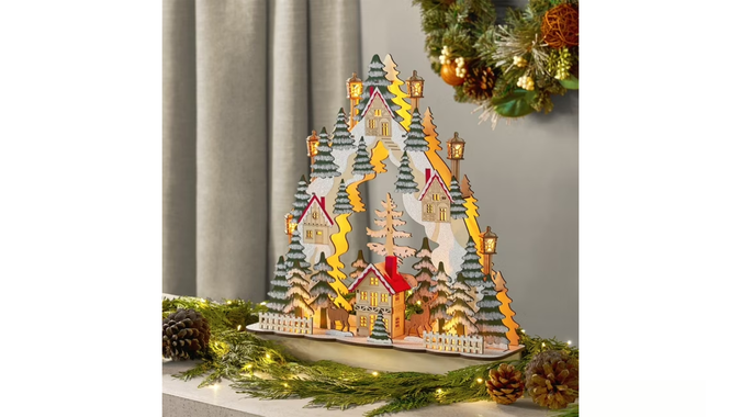 Add festive charm to your mantle, shelves or other space with the Member’s Mark 17-inch pre-lit village scene from Sam’s Club. This scene is full of rich detail and features 15 LED lights that create a cozy glow. You can turn it on and off manually or use the timer so that it will turn on automatically each night. It includes 3 AA batteries, so it’s ready to use.