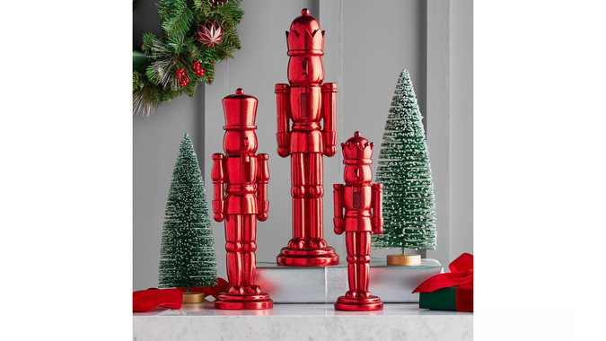 The Member’s Mark nutcracker decor will bring a modern touch to your holiday decorating. This five-piece set includes three nutcrackers with vibrant finishes, as well as two bottle brush trees. The various sizes add depth to your display and since the nutcrackers are made of durable resin, they’re a long-lasting addition to your decorating setup.
