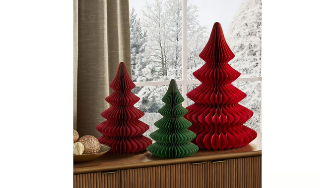 With the Member’s Mark honeycomb tree set from Sam’s Club, you’ll have nearly endless decorating options. These three trees are crafted from lightweight cardboard, so you can place them just about anywhere, including on shelves, mantles, tables, stairwells and more. The trees are held open with magnets and when it’s time to pack them away, you can detach the magnets and fold them flat for space-saving storage.