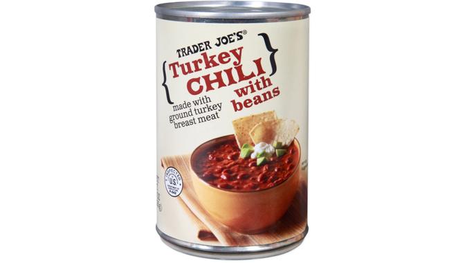 Hearty and satisfying, turkey chili with beans makes for a quick and easy meal. It consists of ground turkey, crushed tomatoes, red beans, diced green chile peppers, jalapeños, onions and a variety of seasonings. You might forget this isn’t homemade.
