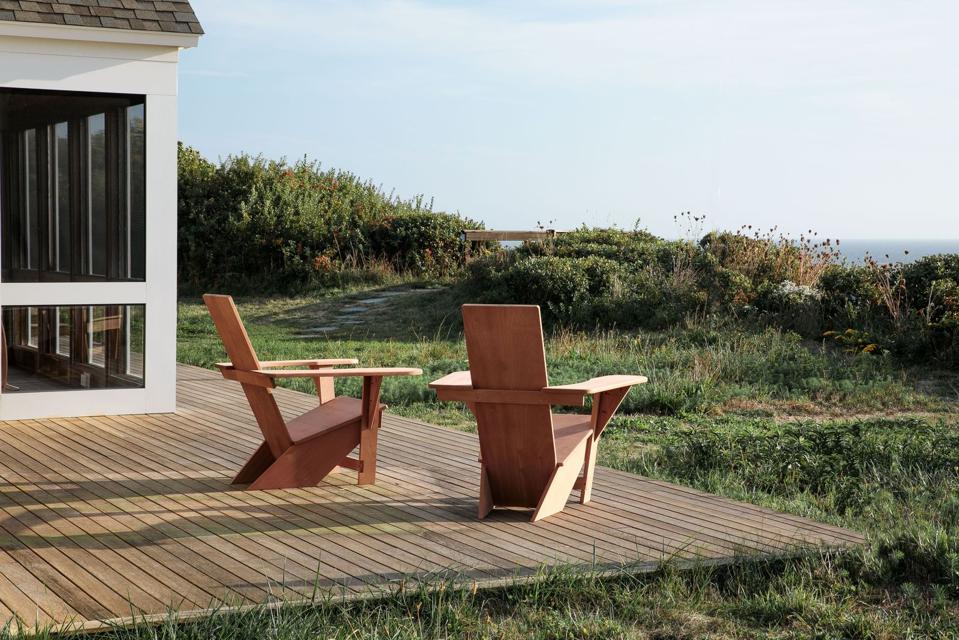 After pouncing on an Adirondack chair at a flea market, designer and builder Chris Nagle was so fascinated by the purchase that he conceived his own homage to Thomas Lee. The result employs notched sapele mahogany to recreate the solid boards of Lee’s 1903 prototype. It also bears a strong resemblance to the furniture of pioneering modernist architect Gerrit Rietveld.