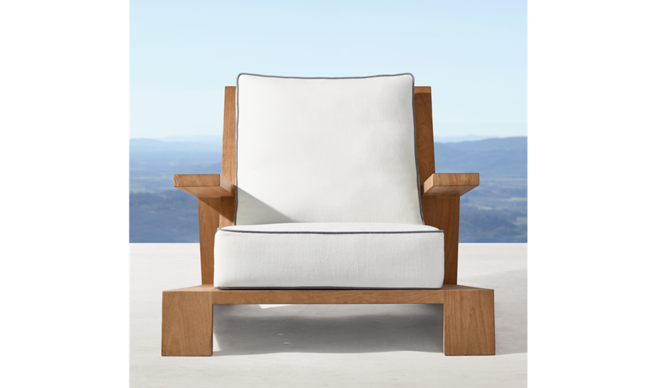 If you lay its backrest slats horizontally, the rustic Adirondack chair suddenly assumes a low-slung appearance, ideal for the waterfront. In this design for West Elm, Polywood rendered the arms in a combination of recycled plastic and tubular metal that evokes a dock ladder or classic ocean liner—and it’s weather resistant, so you don’t have to worry about bringing it in and out of the elements.