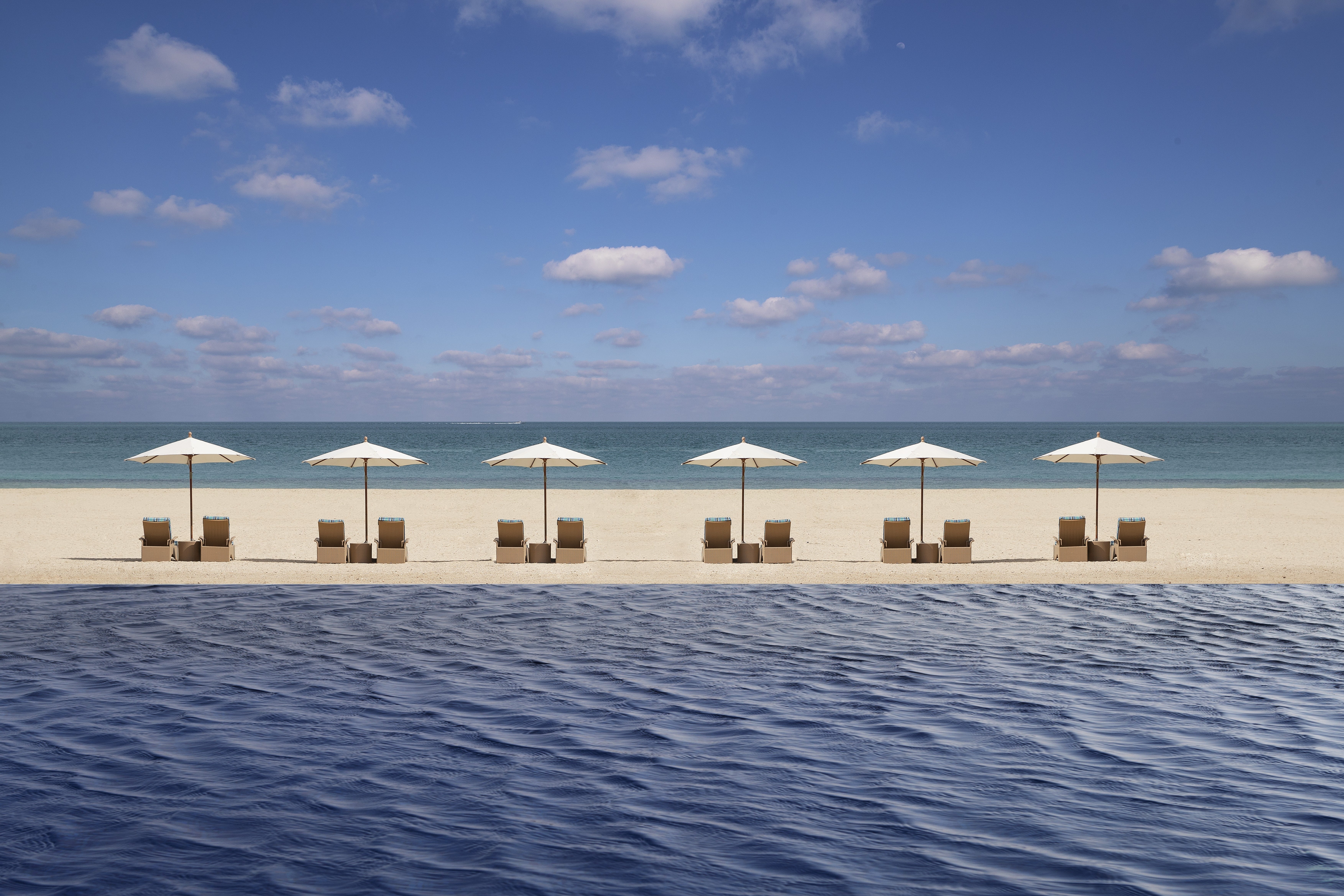 At the opposite end of Saadiyat Beach, the Jumeirah feels more remote than the St. Regis: the shore is quieter here, but you’ll have to travel a few minutes further to reach the city. The entire beach is a Blue Flag area for its impeccable cleanliness and quality, and the sand slopes gently into the cerulean water – while lifeguards patrol the shore on foot and pedalo. Bonus points for the hotel’s zero-plastic efforts too: from biodegradable wheat straws to free refillable bottles, and water stations dotted throughout the grounds.